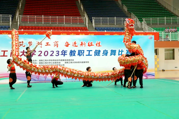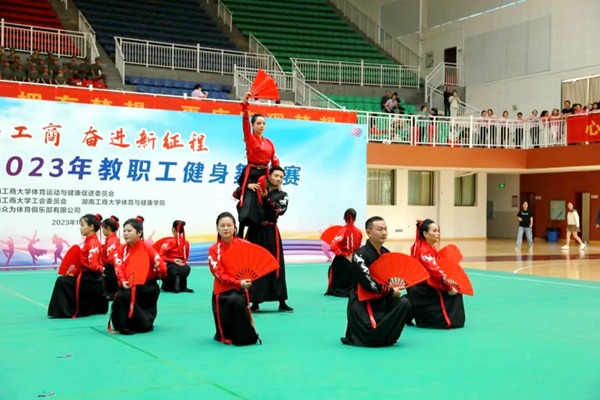 To enrich the cultural and physical activities of the faculty and staff, improve their physical fitness, and enhance their cohesion, the Faculty and Staff Fitness Dance Competition was held on the afternoon of October 17 at the Yangfan Sports Center in the South Campus. The competition had the theme "Building Dreams at HUTB, Striving for a New Journey." The event was attended by Liu Guoquan, Member of the CPC HUTB Committee and Vice President of HUTB, and Xiao Xiaoqin, former Deputy Secretary of the CPC HUTB Committee and Chairman of the Labour Union.