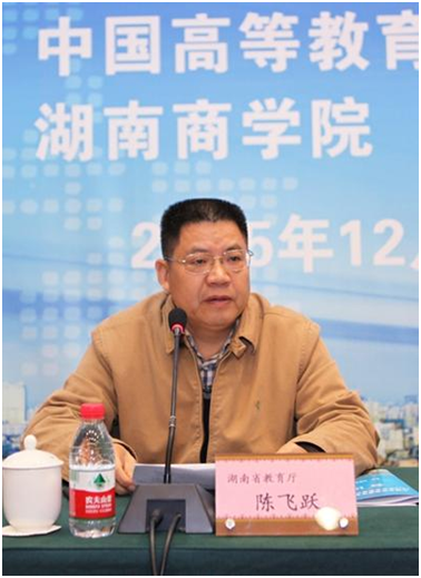 Chen Feiyue, party member of Hunan Provincial Ministry of Education and committee member of Provincial Committee of Education, addressed in the opening ceremony. He made an introduction of the current development situation of Hunan higher education and extended his wish that Hunan University of Commerce, as the vanguard of financial and economic universities in Hunan, should fully play its key role in talent cultivation, scientific researches, social service and culture advocating. He also expressed, our school should take this opportunity to further update education philosophy, form education features and improve school-running level, so as to make greater contribution to the overall education improvement and social & economic development of Hunan Province.