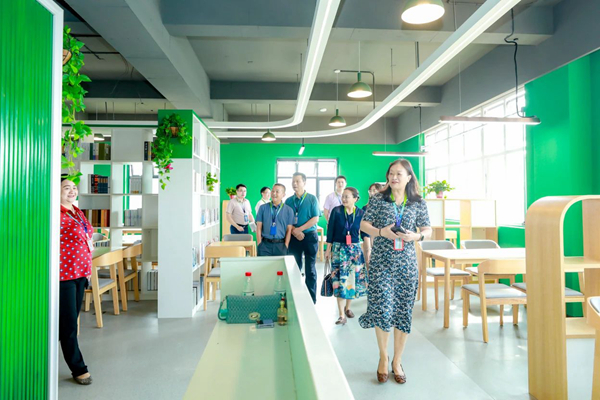 The Chief Leaders first visited the newly completed Zhuiguang Building(Teaching Complex) and held a plaque unveiling ceremony. Zhuiguang Building carries the theme "Chasing the Light All the Way, Growing Toward the Sun." It features a vibrant red and yellow color scheme, exquisite design, and simple and bright interior decoration. The building houses offices, meeting rooms, a multifunctional lecture hall, multimedia classrooms, and the Caihong Academy, providing a new space for work and study for the faculty and students on the North Campus. The Caihong Academy is primarily designed with green as the main color, giving a refreshing and natural feeling, a kin to a breath of fresh air. It is the university's twelfth modern academy.