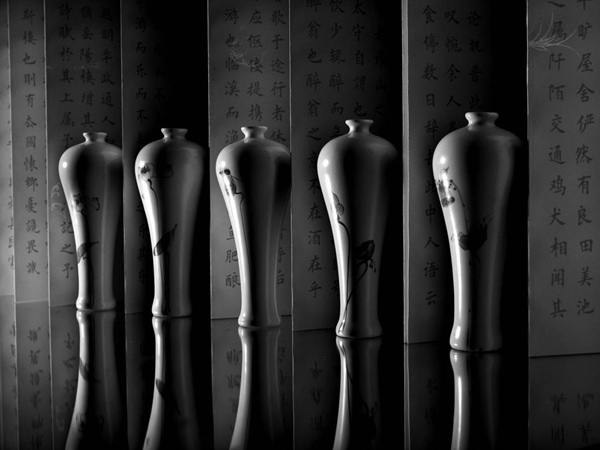 Chinese ceramics, as a treasure of Chinese culture, have a long history and profound cultural heritage. Among the ancient Chinese ceramics, the most famous ones are Ru kiln, Guan kiln, Ding kiln, Jun kiln, and Changsha kiln. These ceramics have reached a unique artistic peak in terms of production technology, decorative techniques, and design of vessel types. They are not only an important part of Chinese art history but also provide endless inspiration for the inheritance and development of cultural heritage in later generations. In order to showcase the historical and cultural features and exquisite craftsmanship of Chinese ceramics, Professor Yu Jian used various special artistic techniques such as composition, lighting, tonality, and structure. Through changes in black, white, and gray shades, he created a visually striking effect with a novel composition, rich tonality, and strong contrasts, capturing the symbolic meaning of black and white ceramics with human characteristics and presenting form and tonal beauty. The work "Ceramics" uses symbolic methods to express an image of pottery making. At the same time, it also conveys multi-layered meanings through symbolic symbols, including ancient and splendid Chinese culture, artisan spirit, and global influence.