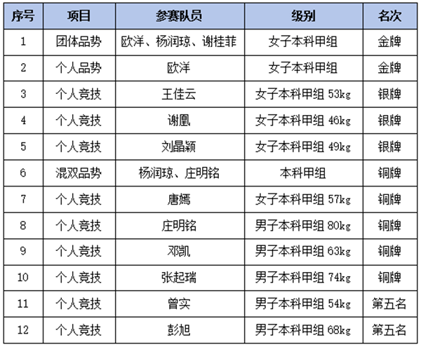 On November 20, Tang Yan, an athlete from HUTB, competed against Hunan Police Academy. In a crucial round where her stamina was pushed to the limit, she managed to maintain her lead until the end of the match with her exceptional willpower. She advanced to the semifinals and won the bronze medal. Xie Huang, an athlete from HUTB, easily advanced to the championship match and competed against Hunan First Normal University, challenging the national champion. With a narrow margin, she won the silver medal. Deng Kai, an athlete from HUTB, won against Hunan First Normal University, advancing to the semifinals where he faced Hunan University, the national champion. After a fierce battle, he ultimately won the bronze medal.