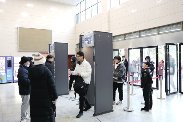 This year, the university strengthened the unified management of mobile phones before the examination. Intelligent security gates were installed at the entrances of the Lezhi Building and Zhicheng Building examination centers to conduct strict inspections of electronic devices. Additionally, “mobile phone storage areas” were set up outside the buildings for candidates to store their mobile phones and other electronic devices.