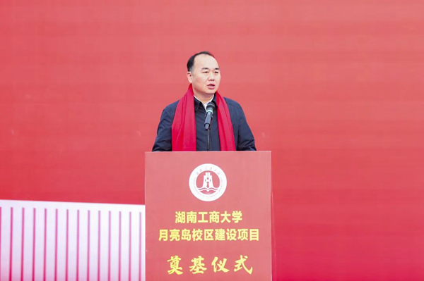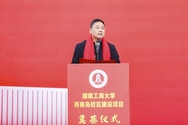 Chai Shiqin, Second-level Inspector of the Department of Education of Hunan Province, delivered a speech at the event. He stated that HUTB has achieved historic accomplishments in various undertakings under the leadership of Academician Chen Xiaohong in recent years, demonstrating a promising future. The completion of Yueliangdao Campus will effectively promote the further improvement of the quality of higher education in our province, better meet the expectations of the people for high-quality education, and provide strong intellectual support and talent guarantee for the sustainable development of the economy and society. He expressed the hope that all parties can cooperate for a win-win situation, radiate and drive each other, and build the new campus safely, with high quality and efficiency. This will create a new model of multi-party cooperation, work together to create a new highland for serving the development of the social economy, and demonstrate responsibility in realizing the blueprint of “Three Highlands, Four New Missions”.