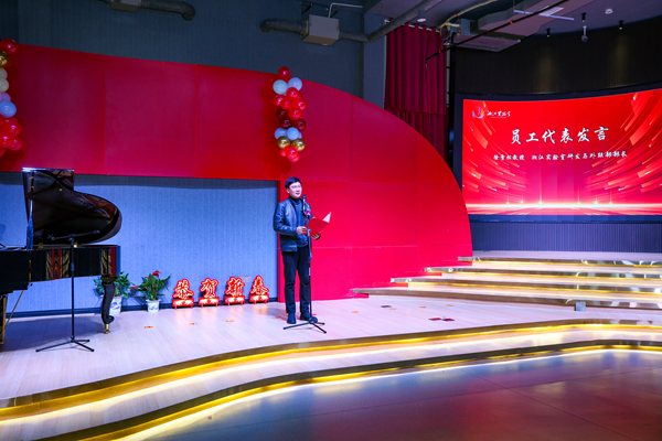 Professor Xu Xuesong, Director of Research and External Relations Department at the Xiangjiang Laboratory, spoke as a representative of the staff. He recalled that as a member who has experienced the Xiangjiang Laboratory firsthand, he witnessed the brilliant entrepreneurial journey of the laboratory from "0 to 1". From responding to the national call for high-level self-reliance and self-improvement in science and technology, to the grand launch of the Xiangjiang Laboratory, and then to the operationalization and forward-looking layout leading to the transformation and application of a series of major scientific research achievements, the Xiangjiang Laboratory has seen its circle of friends continuously expand from government leaders and industrial allies to partners in innovative research institutes. The high-level platform of the Xiangjiang Laboratory is gaining widespread recognition! He stated that in the coming year, "the direction is clear, the goals are set, and the key lies in comprehensive implementation!" All members of the Xiangjiang Laboratory will continue to be dedicated "iron nails" at their posts, responsible "iron shoulders" in their duties, and determined "iron fists" in carrying out orders. They will anchor themselves like a green mountain, roll up their sleeves and work hard, and accelerate the drawing of a splendid blueprint to build the national strategic scientific and technological strength.