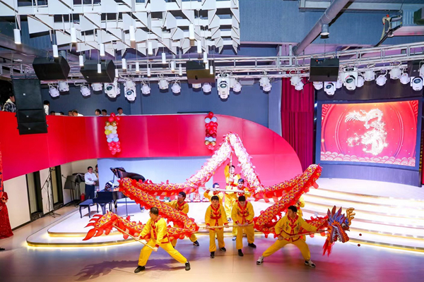 The event opened with the performance "The Golden Dragon Welcomes the Spring", where a golden dragon danced and joyful songs welcomed the spring. With an uplifting and energetic attitude, lively and passionate, the event warmly welcomed the guests and celebrated the upcoming Chinese New Year. The golden dragon performance also invited Academician Chen Xiaohong to add the finishing touch, carrying not only congratulations for the New Year but also the hope for the Xiangjiang Laboratory to soar to new heights and achieve even greater success in the coming year.