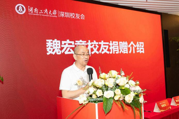Alumnus Wei Hongzhang, graduated from HUTB in 1985 and majoring in finance and accounting, holds a PhD in management. He is the co-founder of Shenzhen Techwinsemi Technology Co., Ltd., a company listed on the Main Board, Chairman of Hunan Dongfang Tianrun Agricultural Technology Co., Ltd., and Executive Director of Shenzhen Deyalun Capital Management Co., Ltd. He is also Chairman of Shenzhen Shunji Real Estate Development Co., Ltd., Vice President of the HUTB Alumni Association, President of the Shenzhen Alumni Association, and Vice President of the Alumni Entrepreneur Association.
