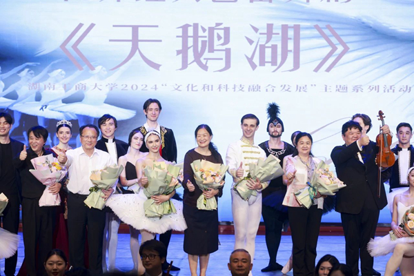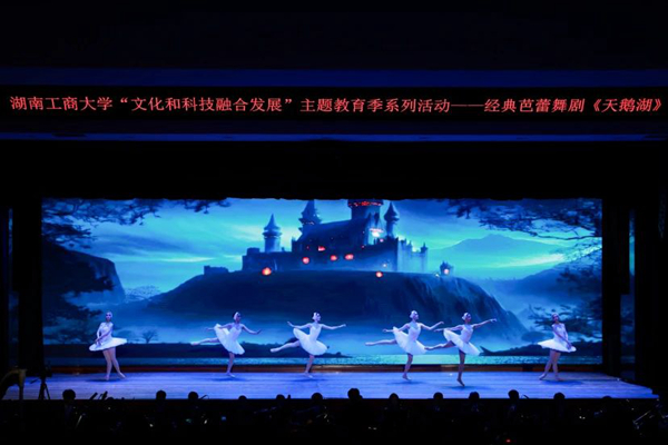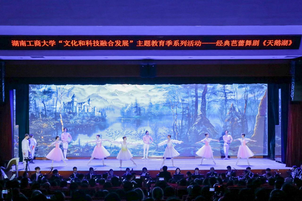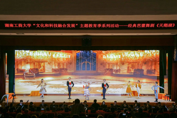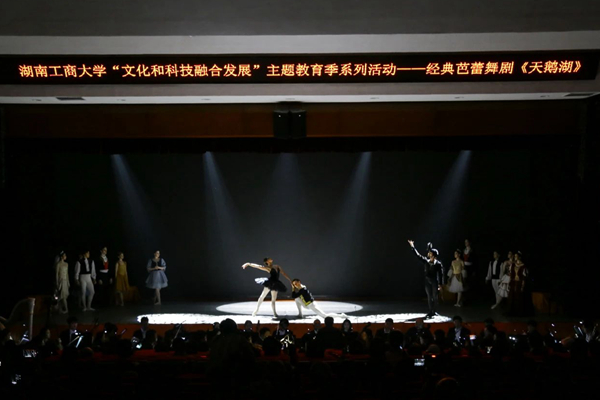 Technology creates the future, while art illuminates life. On the evening of April 25, as part of the HUTB 2024 Integrated Development of Culture and Technology Themed Education Season, the world-renowned ballet "Swan Lake" was elegantly performed at the Xiangjiang Lecture Hall. Chen Xiaohong, Secretary of the CPC HUTB Committee, Director of Xiangjiang Laboratory, and Academician of the Chinese Academy of Engineering (CAE), Xiao Yayu, former Deputy Director of Provincial NPC Standing Committee, Liao Keqin, former Deputy Secretary-General of the Provincial Government and former Director of the Shenzhen Office of Hunan Provincial People's Government, Zhang Ling, Vice President of HUTB, Yang Liangqi, Member of the CPC HUTB Committee and Vice President of HUTB, along with faculty, students, and distinguished guests gathered together to appreciate this romantic and enchanting ballet performance filled with beautiful music and graceful dance movements.