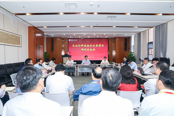 In order to implement the unified deployment of the CPC HUTB Committee regarding the promotion of integrated development of culture and technology, and to comprehensively promote the transformation of concepts and improvement of capabilities among faculty and staff in areas such as artificial intelligence (AI) and interdisciplinary studies, and to normalize such promotion, a frontier research and exchange meeting on the integrated development of culture and technology was held on the afternoon of April 28 at the Zhizhi Lecture Hall on the 6th floor of the Xiangjiang Building. Liu Guoquan, Member of the CPC HUTB Committee and Vice President of HUTB, attended and presided over the meeting. Heads of relevant functional departments, leaders of all secondary schools, and young doctoral representatives also participated in the meeting.