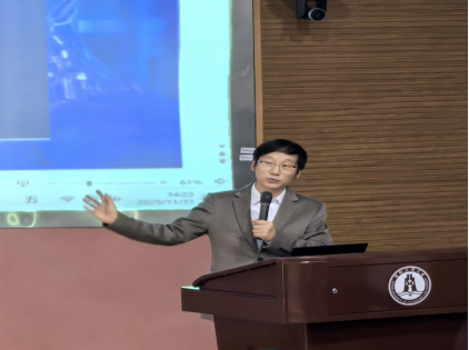 会议由设计艺术学院禹云贵、廖建民两位副教授主讲。禹云贵副教授以《AIGC重塑设计生态:跨学科视角下的创新创意实践研究》为题,系统阐述了生成式人工智能在设计创作、视觉生成、视频制作等多领域的广泛应用,并结合教学智能体开发、跨专业编程实验等案例,探讨了AIGC技术与设计学科交叉融合的创新路径。