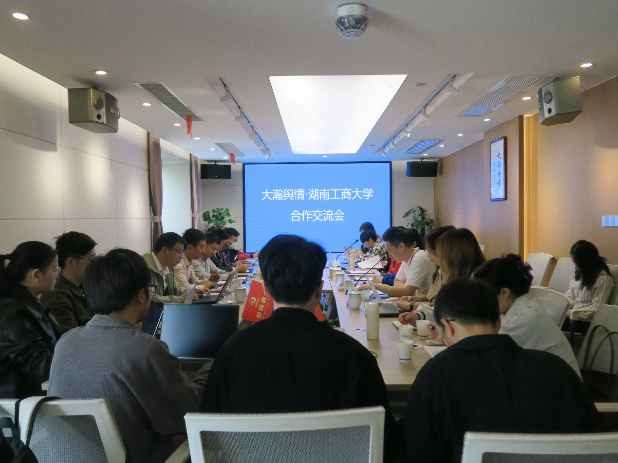 副院长王佩良教授介绍了我院发展历程、师资力量、学科平台、专业设置、实验室建设、人才培养、科研成果。数字传媒与人文学院由学校党委书记陈晓红院士担任名誉院长,坚持“新工科+新商科+新文科”与理科融合发展理念,充分发挥技术创新与内容创作交叉融合发展优势,开展数字传媒与人文学科跨界研究与教学,致力于培养创新型、创业型、应用型、复合型高级传媒与舆情管理人才,办学成效显著,社会声誉卓著。学院办学定位与大瀚舆情业务特色高度契合,可结合党的二十大报告关于构建国家整体安全战略要求,双方强强联手,校企互动,产教融合,开展多领域全方位的深度合作。