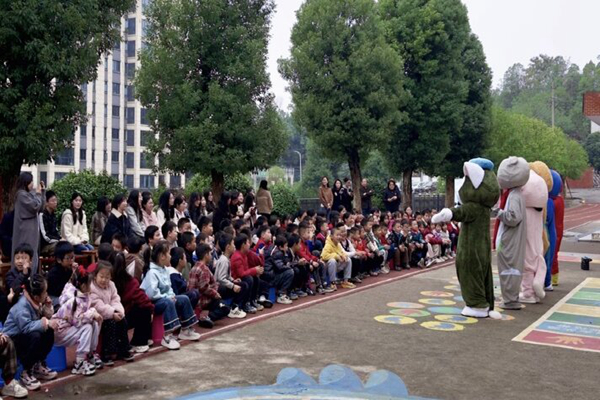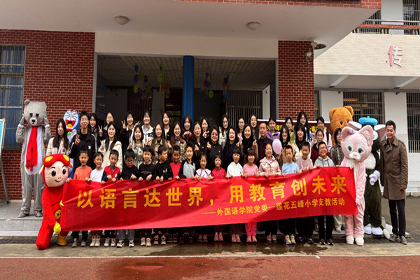 新湖南客户端11月12日讯(通讯员 陈潇 朱琪 王召之)11月11日,湖南工商大学外国语学院党委组织教工党员、学生党员和入党积极分子团队来到莲花五峰小学开展支教和党日活动。 莲花五峰小学和湖南工商大学师生齐聚在教学楼前坪举行集体见面会,五峰小学校长刘田田向外国语学院师生的到来表示热烈欢迎。外国语学院学生党员表演了英文歌曲《Do-Re-Mi》、手势舞《国家》;五峰小学朗诵队的同学们表演了诗歌朗诵《一只钢笔》。