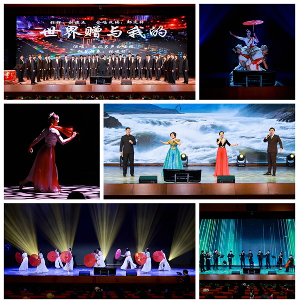 大会期间,“文化+科技”融合发展联盟成员团和音乐学院师生表演了舞蹈《青春下的红油伞》、男女声四重唱《长江之歌》、室内乐《樱桃树下》、合唱《世界赠予我的》和《中国男儿》等精彩的文艺节目。