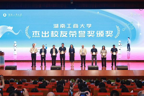 在湖南工商大学2024年度杰出校友荣誉奖颁奖环节,学校向深圳市德明利技术股份有限公司联合创始人魏宏章、珠海芯烨电子科技有限公司执行董事刘彦波、湖南佳惠集团执行董事叶红昕、深圳市雷诺微电子有限公司总经理雷亮、长沙市汇银小额贷款有限公司董事长曾力、湖南汇美农牧发展有限公司董事长易莉、吉首大学鲁明勇、中央广播电视总台央广传媒副总经理周竟东颁发荣誉证书,以表彰他们对母校事业发展和“校友回湘”工作作出的重要贡献。