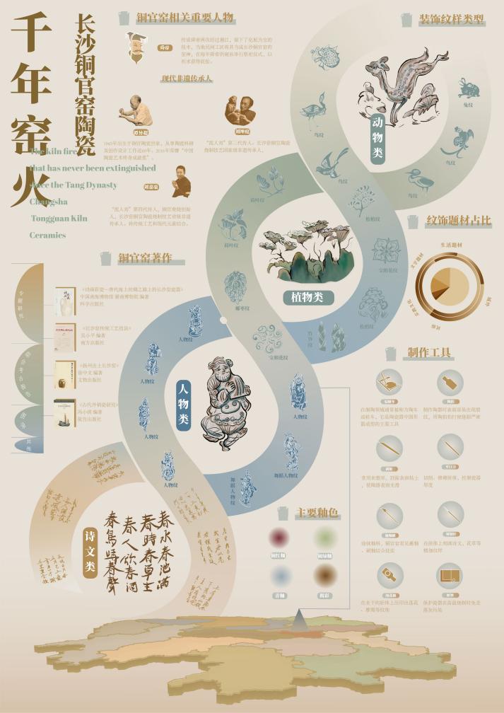 作品简介:本作品聚焦文化遗产数字化呈现,色彩系统提取唐代陶瓷釉色,界面融入书法笔触与窑火纹理,实现数据叙事与美学体验的统一。周边产品设计以“活化非遗”为核心,结合AR技术实现文物虚拟展演。材质选用亚克力板、陶瓷等材质,构建从数字体验到实体产品的文化传播闭环,推动传统窑艺融入当代生活方式。