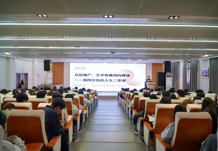 2025年11月26日,湖南省艺术收藏家协会主席、湖南高信置业集团董事长刘兴跃先生受邀做客湖南工商大学麓山大讲堂,以"我所经历的人生三堂课:从房地产、艺术收藏到自媒体"为主题,为设计艺术学院学子带来精彩分享。