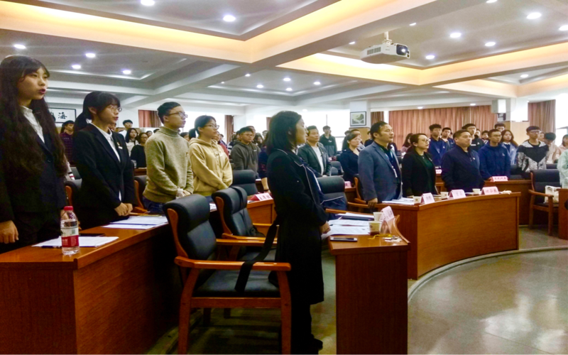 会议在雄伟壮丽的国歌声中拉开帷幕。曾晶书记代表学校团委对过去一年我院的团学工作表示了充分肯定,并从深入学习贯彻落实习总书记重要讲话和指示精神,在党的关怀指导下阔步向前;要真正深入青年,密切联系青年,切实服务青年;加强自身建设,从严治团,焕发朝气蓬勃的清新活力等三个方面对我院团学工作提出了殷切希望。