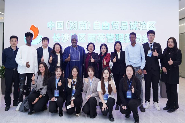 On November 7, the inaugural public salon of the "China-Africa Economic and Trade Series," part of the Luban Workshop Lecture, was held at the Hunan China-Africa Economic and Trade Cooperation Promotion and Innovation Demonstration Park. The event was organized by the Hunan China-Africa Economic and Trade Promotion Council, and co-hosted by Hunan Huidafeng International Trade Co., Ltd. and Nigeria China-Africa International. Professor Zhang Ling, Vice President of HUTB, was invited to lead a delegation to the event, which included faculty from the International Exchange and Cooperation Office, international students studying in China, and Chinese student volunteers.