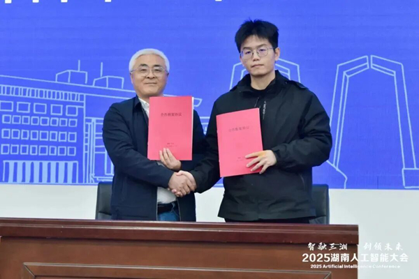 During the conference, the Hunan Association for Artificial Intelligence signed a cooperation framework agreement with Shenzhen SYD Network Technology Co., Ltd. Both parties will continue to deepen their collaboration in the "Challenge-based Competition" segment of the Hunan Provincial Graduate AI Innovation Competition, promoting the integration of corporate technical challenges into university competitions. This initiative aims to pool the wisdom of young talents to tackle critical "bottleneck" problems and establish a new industry-university-research collaboration mechanism characterized by "promoting research and transformation through competition."